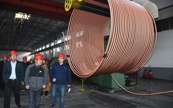 參觀團(tuán)在生產(chǎn)經(jīng)理帶領(lǐng)下來到銅業(yè)公司生產(chǎn)車間,詳細(xì)聽取和了解宏泰連鑄連軋自動(dòng)化銅管生產(chǎn)工藝,針對(duì)生產(chǎn)管理提出了寶貴的建議和意見。
