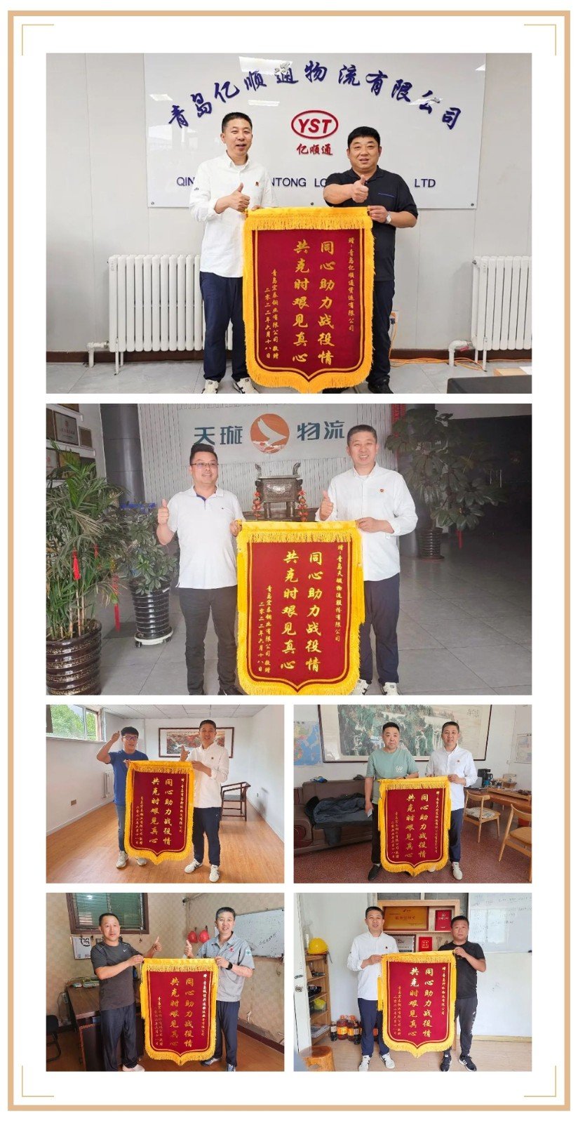 是什么支撐著他們逆行的身影?青島億順通貨運(yùn)有限公司王總說:“當(dāng)時(shí)就是考慮,出現(xiàn)疫情,生產(chǎn)廠家更困難,而我們還能協(xié)調(diào)安排好運(yùn)輸以助一臂之力,所以要求對年度合同客戶一律不能漲價(jià)。當(dāng)時(shí)我們四個(gè)公司(北京、天津、黃島、青島)員工都是很辛苦的,疫情期間我們貨物爆倉,大部分員工及經(jīng)理都在公司常駐,保證客戶的貨物能盡快發(fā)出”。