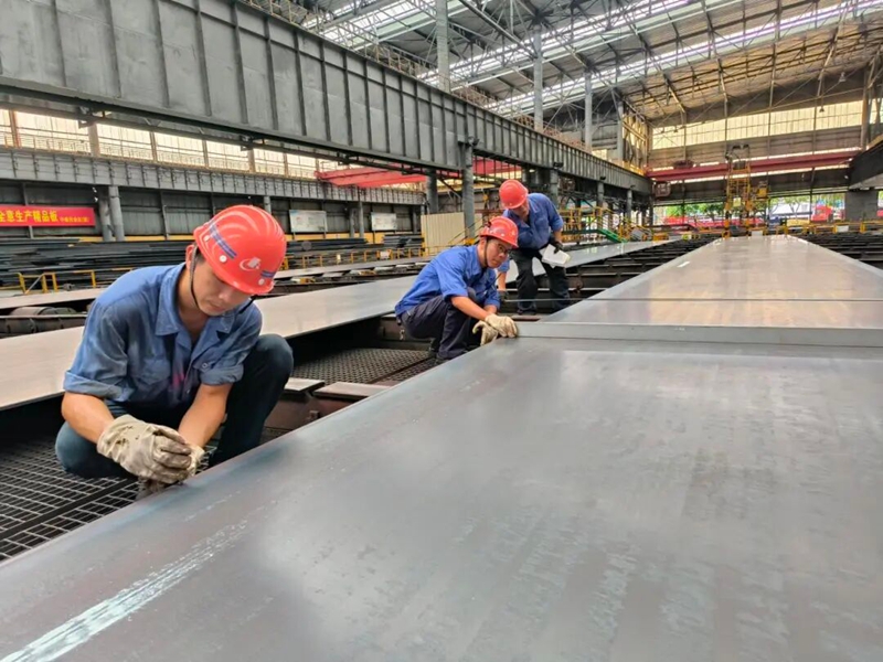 三鋼閩光股份公司板材事業(yè)部中板作業(yè)區(qū)熱軋乙班骨干和職工堅守崗位,一絲不茍地測量鋼板厚度、寬度、不平度等參數(shù),為生產(chǎn)高質(zhì)量板材保駕護航,以優(yōu)質(zhì)產(chǎn)品更好地展現(xiàn)企業(yè)的良好形象。