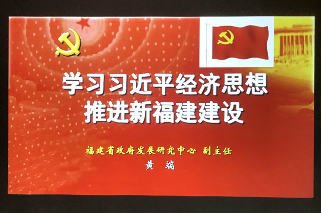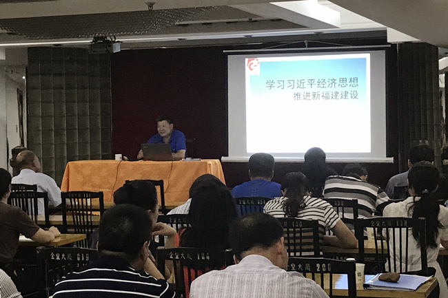 為進(jìn)一步興起習(xí)近平新時(shí)代中國(guó)特色社會(huì)主義思想“大學(xué)習(xí)”熱潮,8月14日下午,福建輕紡邀請(qǐng)省政府政策研究中心副主任黃端作《學(xué)習(xí)習(xí)近平經(jīng)濟(jì)思想 推進(jìn)新福建建設(shè)》專(zhuān)題講座,公司近100名黨員干部職工參加了本次學(xué)習(xí)。